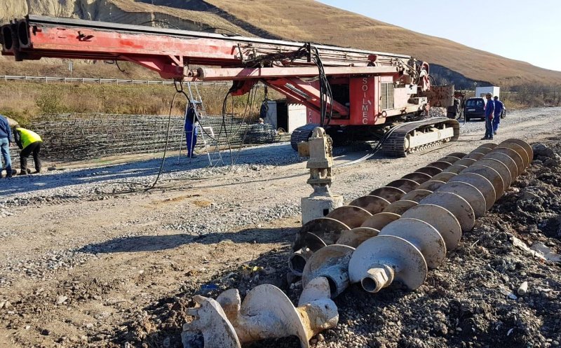 Au început lucrările de foraj pentru amplasarea piloților la zidul de sprijin de la Pata Rât