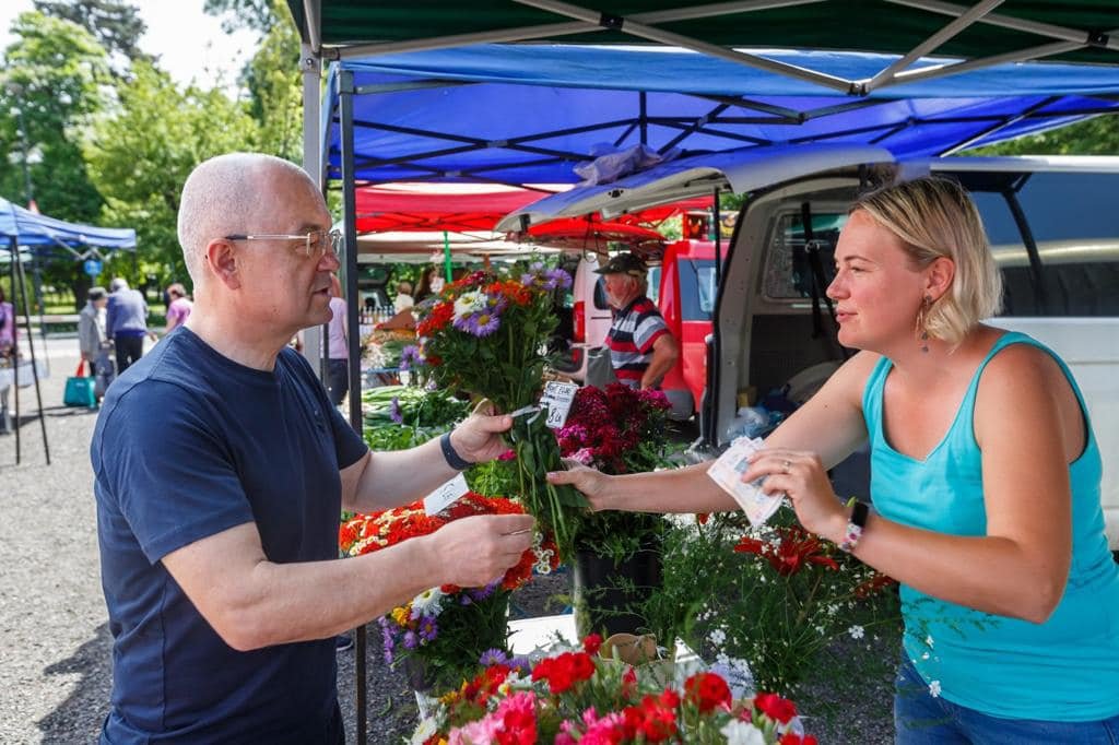 Boc, cumpărături de weekend în piața de lângă Cluj Arena: "Susținem producătorii locali"