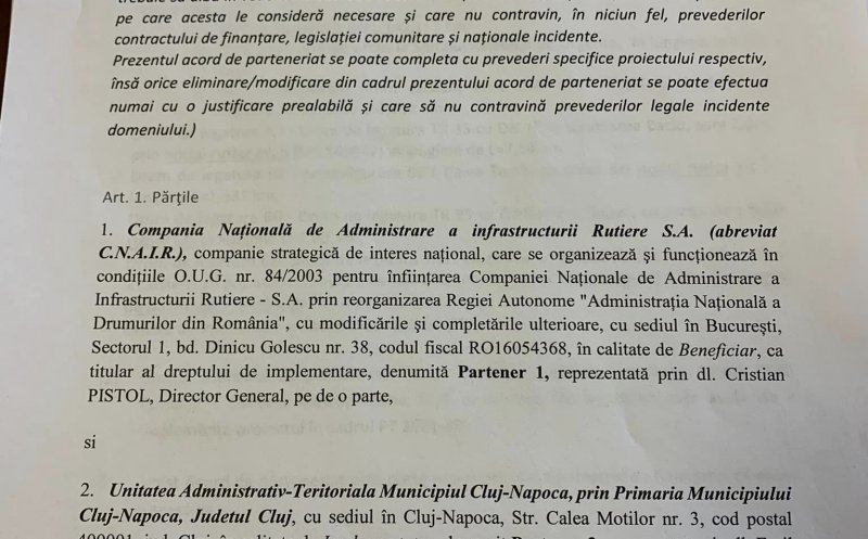 "Am semnat , azi, împreuna cu dl director general CNAIR, Cristian Pistol, și in prezenta Ministrului Transporturilor, dl Sorin Grindeanu, acordul de parteneriat in vederea implementării de catre Primaria Cluj-Napoca a proiectului Centurii Metropolitane a Clujului.