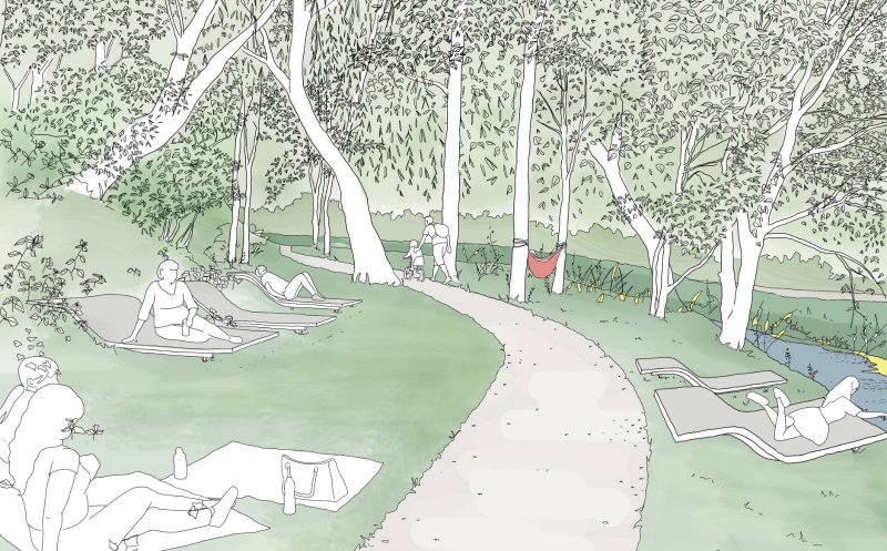 Terenul propus pentru realizarea investiției are o suprafață de 32.669 mp și este situat în intravilanul municipiului Cluj-Napoca, în zona adiacentă Parcului Rozelor. Tronsonul include malurile Canalului Morii, între Someș și str. Plopilor, fiind de asemenea incluse culoarul Pârâului Calvaria, între str. Plopilor și Canalul Morii și zonele de legătură cu principalele funcțiuni adiacente - Parcul Rozelor, zona de locuit către str. Arinilor.