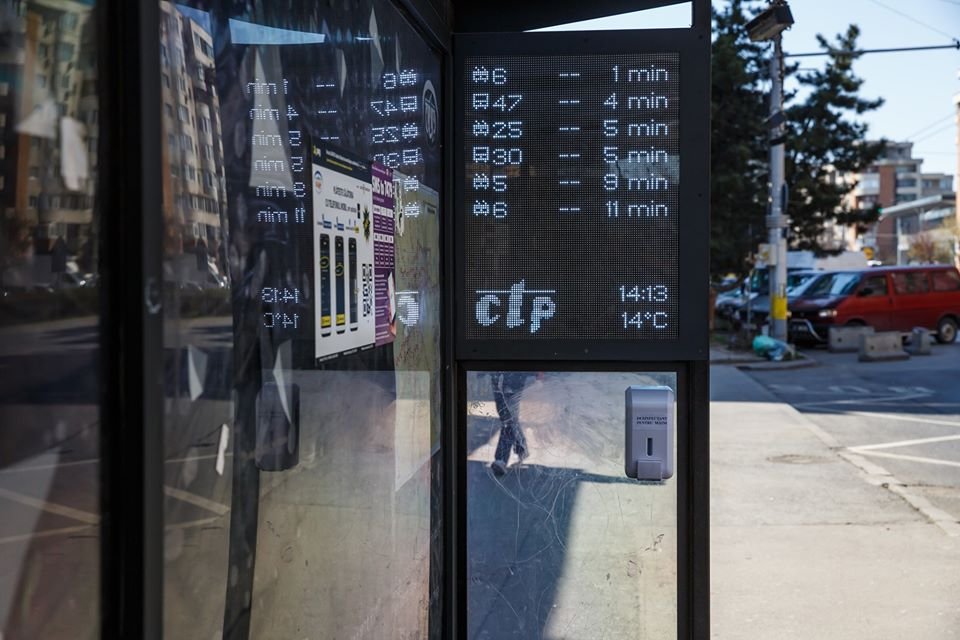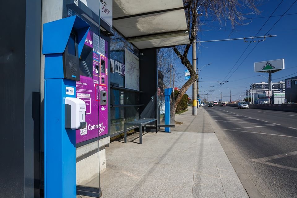Foto Care sunt stațiile de autobuz dotate cu dispensere cu soluție dezinfectantă