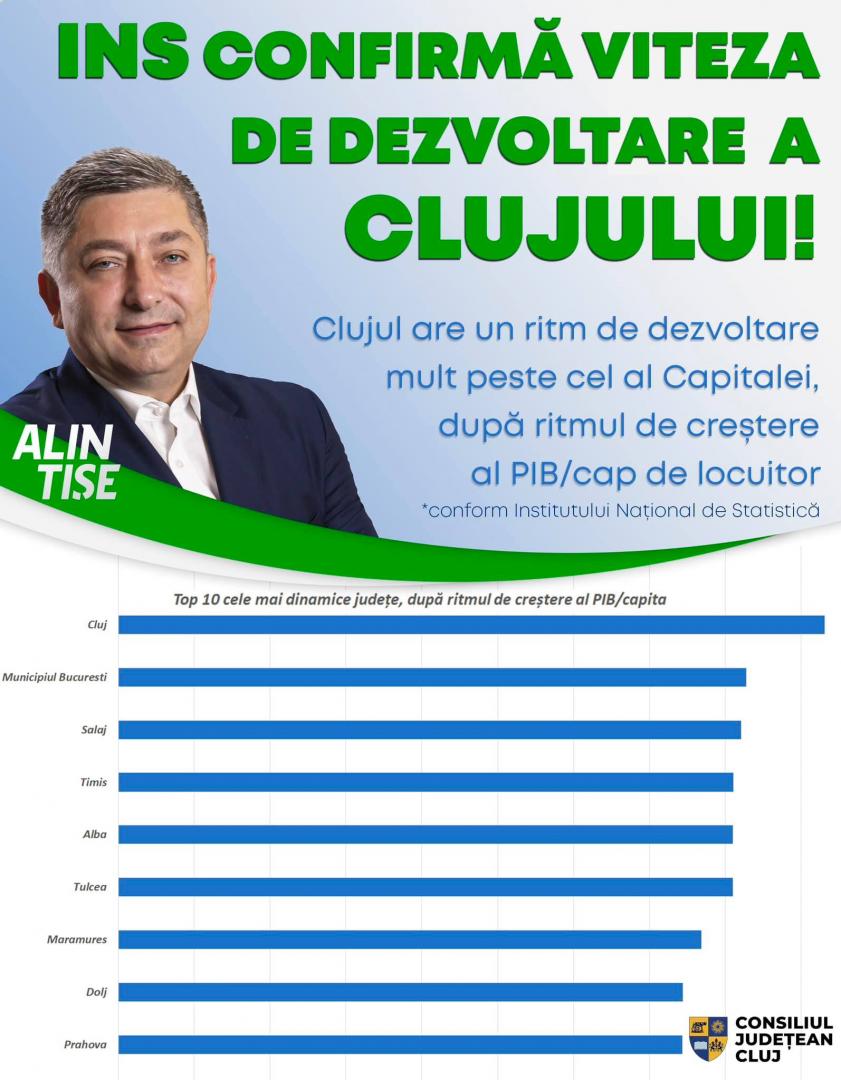 Clujul nu stă pe loc, iar asta se vede și în cifrele livrate de Institutul Național de Statistică, transmite președintele Consiliului Județean Cluj.