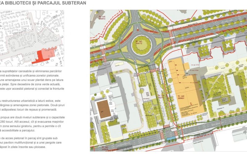 se reorganizează sensul giratoriu, inclusiv prin asigurarea accesului și evacuării unui parcaj subteran public propus în zona Aleii Bibliotecii;
