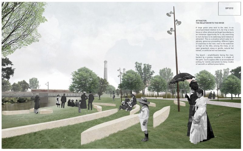 Juriul a apreciat funcționalitatea soluției care propune ierarhii clare ale căilor de circulație și ale spațiilor generate prin configurația vegetației, rezultând caractere diferite și structurări diferențiate ale acestora. Proiectul propune diferite posibilități de acces la malul Someșului, cu diferite atmosfere, predominând cea de pe latura nordică. Sunt ilustrate diferite scenarii de utilizare a spațiilor, inclusiv pe timp de noapte. Spațiile destinate jocului copiilor sunt generoase, iar pavilionul creează o zonă multifuncțională.