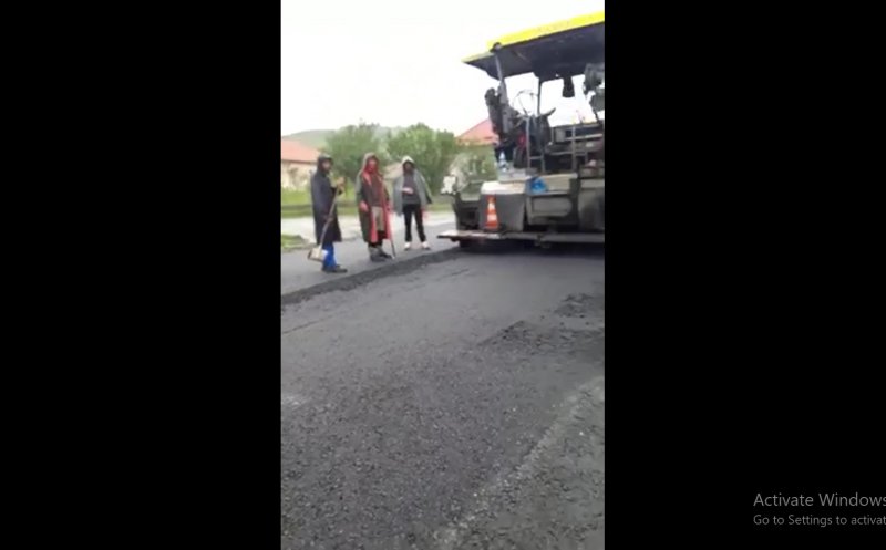 Video La Cluj se toarnă asfalt indiferent de vreme. Chiar şi pe ploaie torenţială