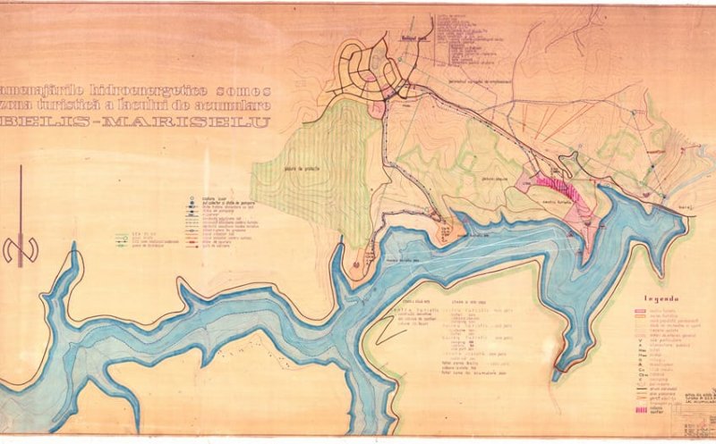 Localitatea Beliș, construită de un arhitect. Zona turistică era prevazuta cu transport pe cablu, iar pe lac erau culoare pentru caiac-canoe