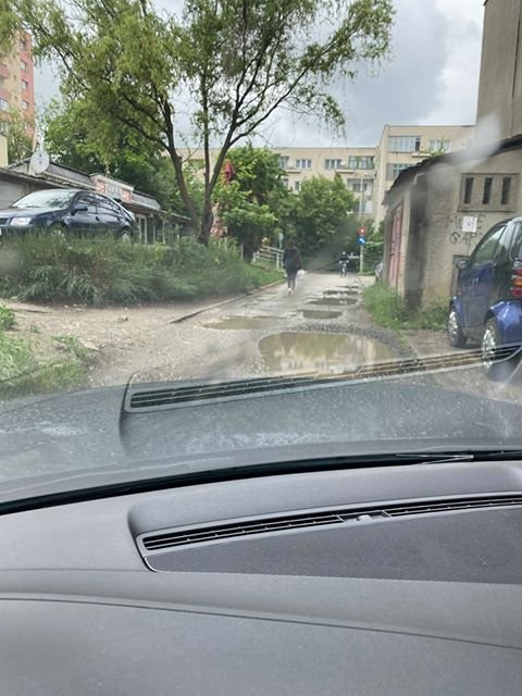 “Uite groapă în Mănăștur, canal descoperit! Azi trei mașini pană, eu mi-am rupt arcul pe spate la mașină. A sunat cineva la 112, a venit un nenea milițian (local), a făcut poze și a plecat, doar are mașină de serviciu și salariu de plătit de noi, muritorii.