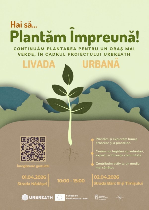 Primăria Municipiului Cluj-Napoca îi invită pe clujeni să ia parte la o serie de activități de plantare organizate în cadrul proiectului URBREATH.