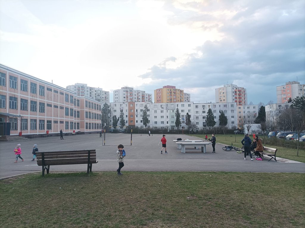 Ieri am numărat 25 de persoane în ora în care am făcut mișcare cu copiii mei. Unii se dădeau cu bita, altii cu trotineta, se juca baschet si fotbal, părinții povesteau. Am jucat prima oară badminton cu Matei, iar cu Timotei am stabilit să învețe aici să se dea cu bicicleta pentru că avem spațiu, așa cum fratele lui mai mare a învățat sa se dea, tot in curtea școlii, in urmă cu 5 ani, când curțile nu erau neapărat deschise, dar se țineau alegerile europarlamentare. Am jucat si ping-pong ca sa testez noile mese instalate în curți, idee foarte bună! Am mai alergat cu amândoi.