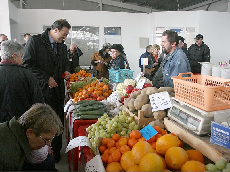 Primăria a inaugurat hala agroalimentară din cartierul Grigorescu. Micii producători stau însă câte trei la o masă şi se plâng că nu au loc să-şi expună marfa.