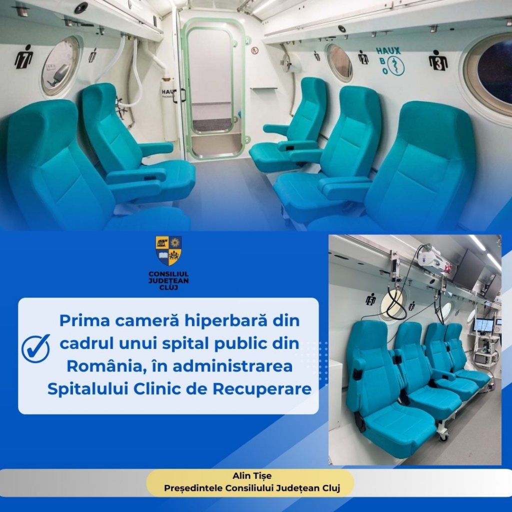 Consiliul Județean Cluj a aprobat atribuirea în administrarea Spitalului Clinic de Recuperare Cluj-Napoca a unei camere hiperbare de înaltă performanță, unică în cadrul unui spital public din România.