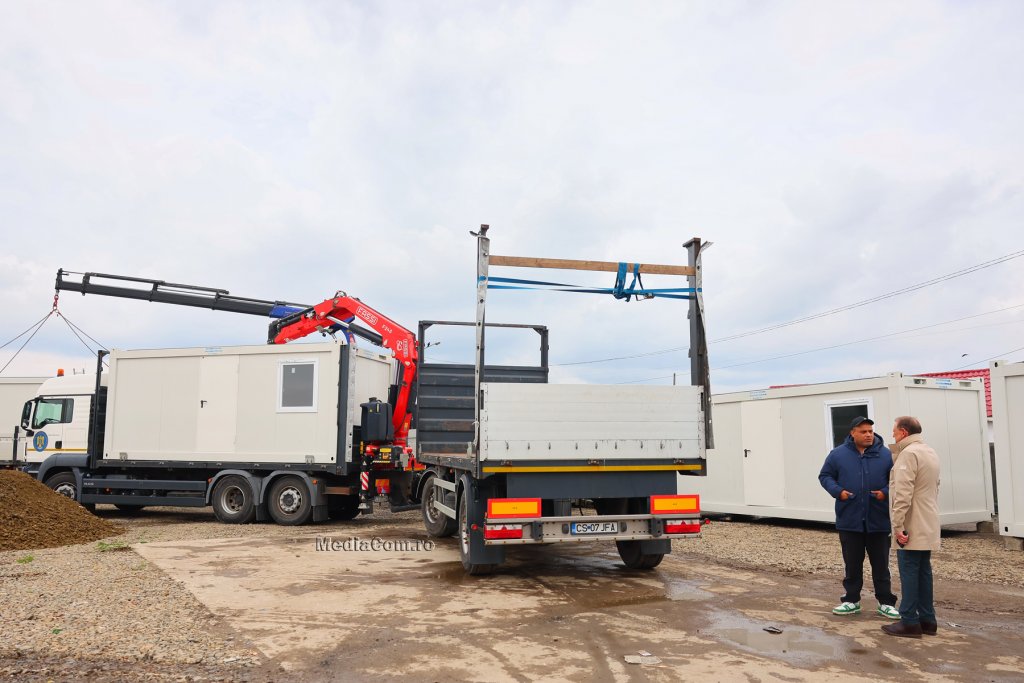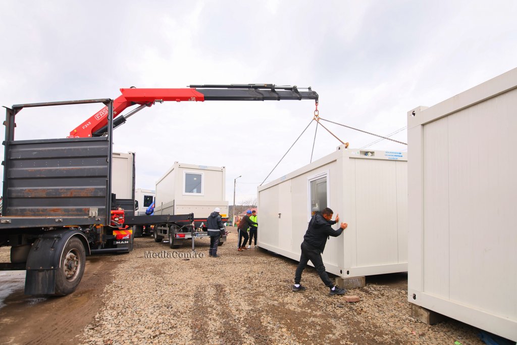 Foto Primele module de locuit destinate familiilor care au pierdut totul în incendiul de pe strada Margaretelor, instalate pe poziții