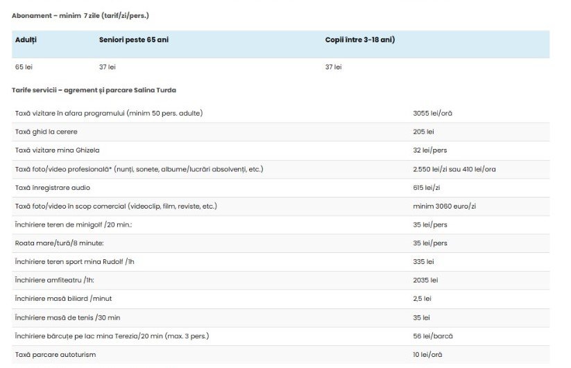 Prețuri Salina Turda