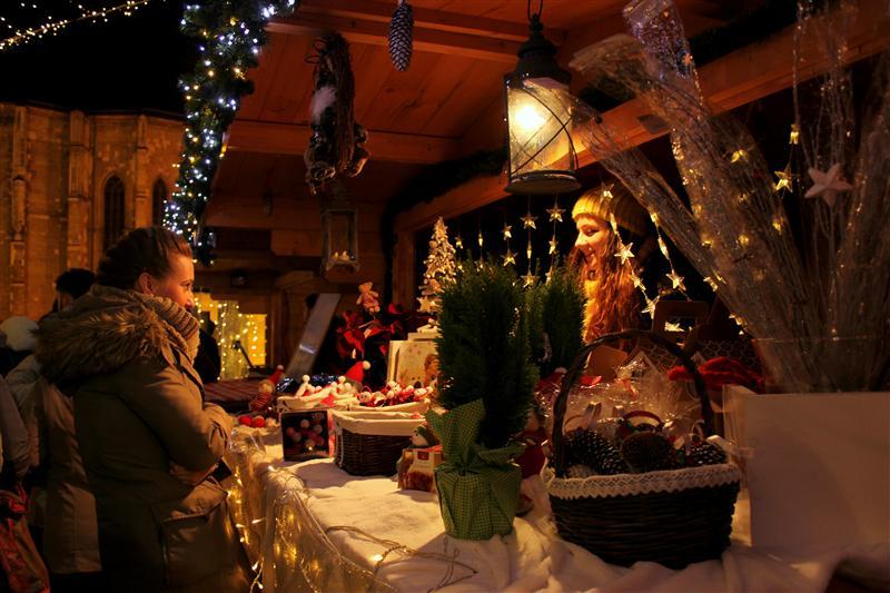 În Piaţa Unirii sunt amplasate 40 de căsuţe, de la care cetăţenii au posibilitatea să-şi cumpere produse de sezon, precum migdale şi nuci glazurate, cozonaci, ceai sau vin fiert cu scorţişoară, dar și o gamă largă de produse gastronomice.