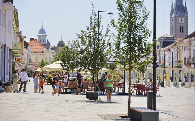 Noua înfățișare a centrului pietonal atrage familii, tineri și vârstnici, care își petrec timpul liber aici, savurând o cafea sau admirând arhitectura clădirilor.