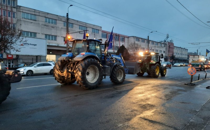 Știrea inițială: O coloană lungă de tractoare și mașini a intrat în municipăiul Cluj-Napoca dinspre comuna Apahida, în jurul orei 17:00.