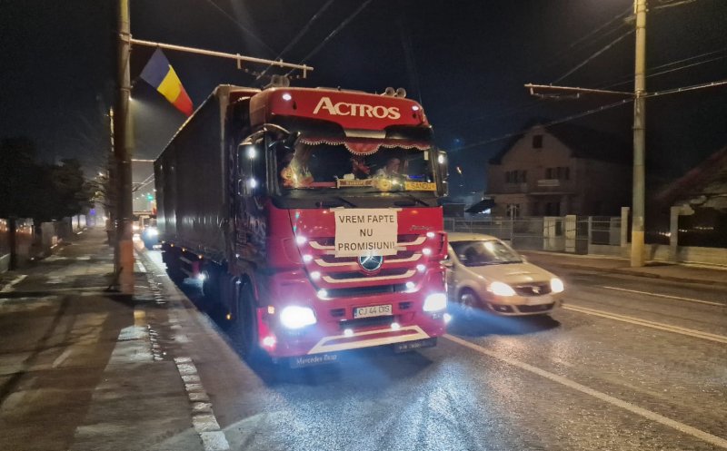 Continuă protestele fermierilor și a transportatorilor din județul Cluj. O coloană de aproximativ 30 de vehicule a intrat în oraș.