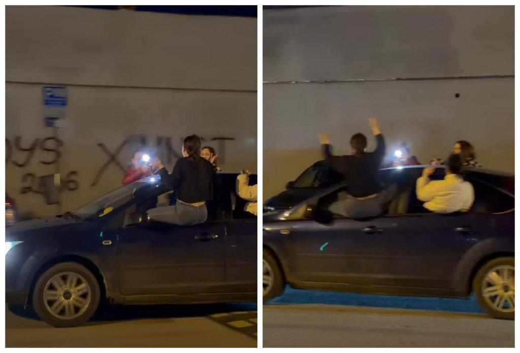 17:23 Polițiștii din cadrul Biroului Rutier Cluj-Napoca s-au autosesizat în urma apariției în spațiul public a unor imagini care surprind mai multe persoane aflate în șezut pe portierele unui autoturism în mișcare.
