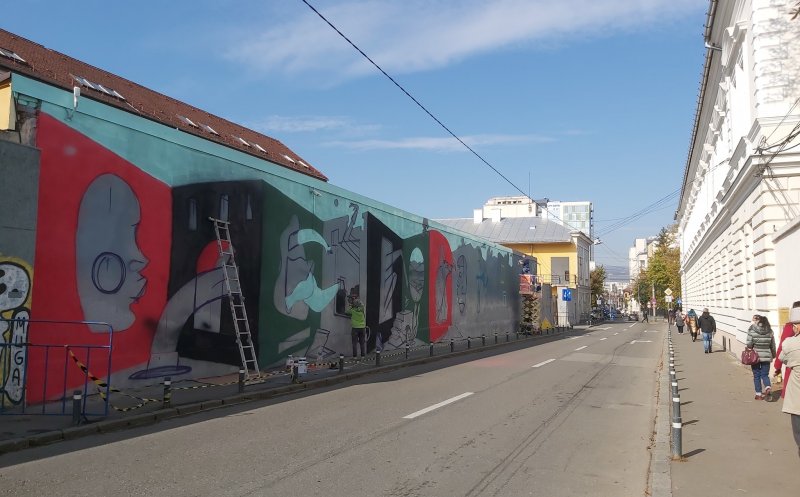 Mural de mari dimensiuni, pe un zid aparținând Eparhiei Reformate din Cluj-Napoca