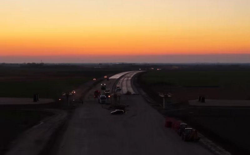 Video Apus superb pe un lot A3, Borș-Oradea-Cluj. Luna e pe cer, oamenii la muncă/ Ce își propune constructorul până la finalul anului