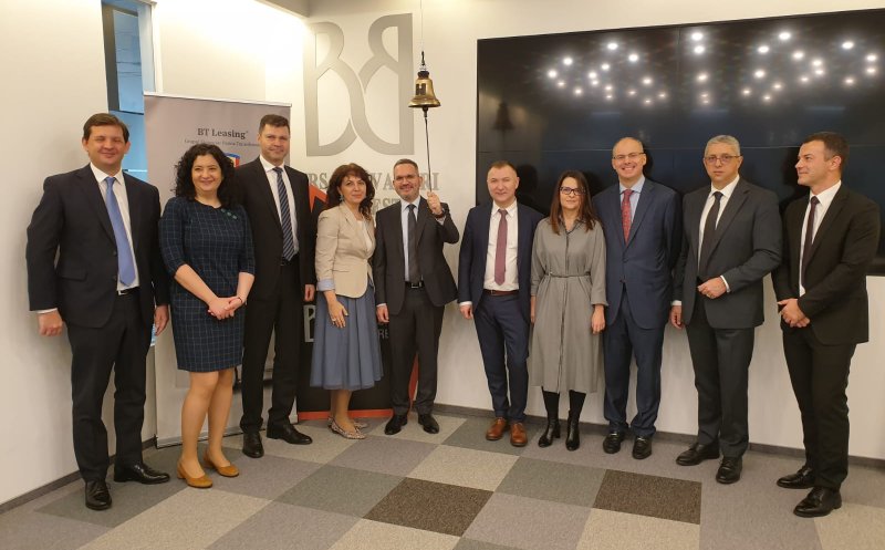 Debutul la BVB a fost marcat oficial azi, la sediul Bursei, iar Grupul BT a fost reprezentat de Ömer Tetik, Director General BT; Ionuț Morar, Director General BT Leasing şi de Daniela Secară, Director General BT Capital Partners.