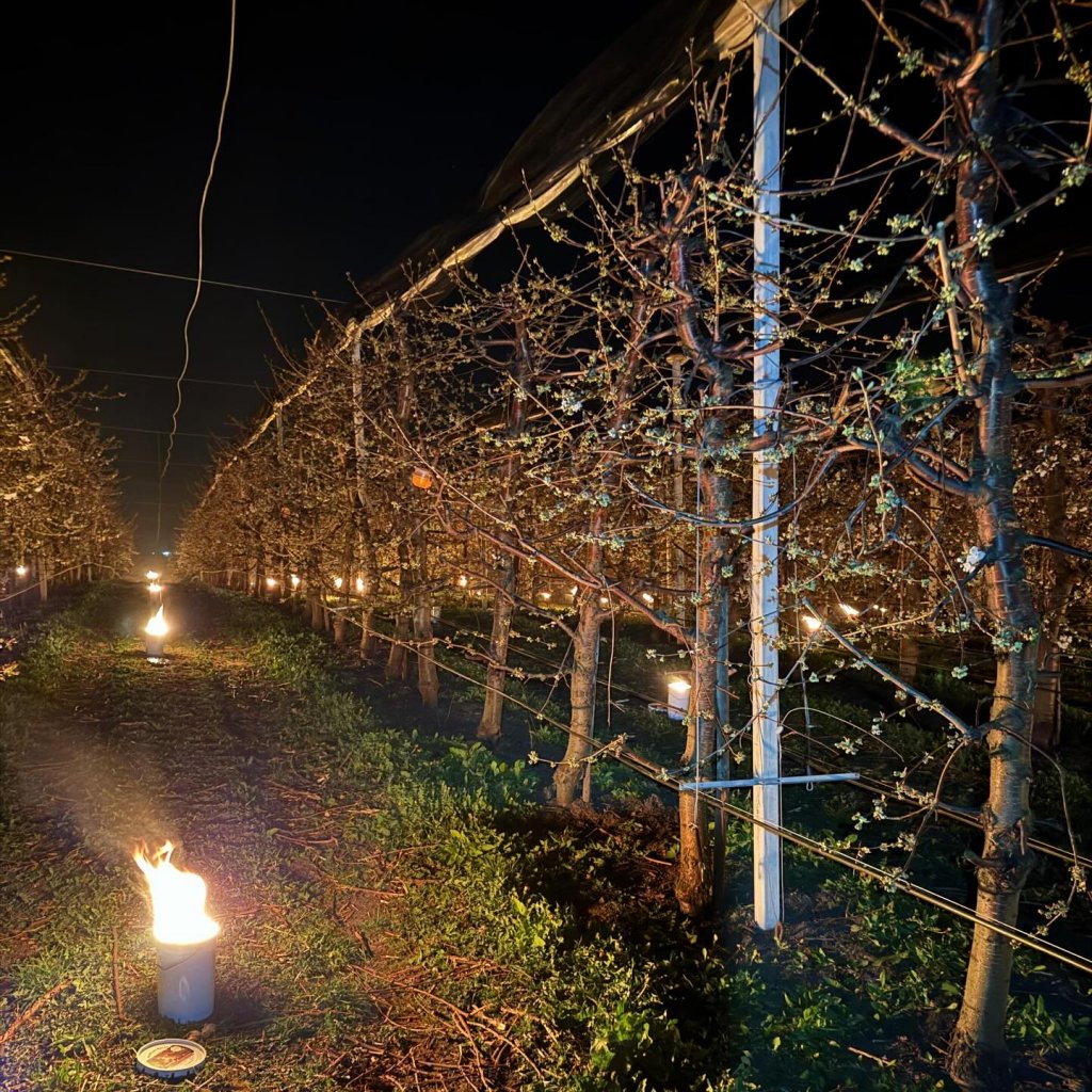 O fermă din apropierea municipiului Cluj-Napoca luat măsuri extreme în urmă cu două nopți, după ce temperaturile au scăzut sub pragul de îngheț, punând în pericol livada de cireși aflată în plină perioadă de înflorire.