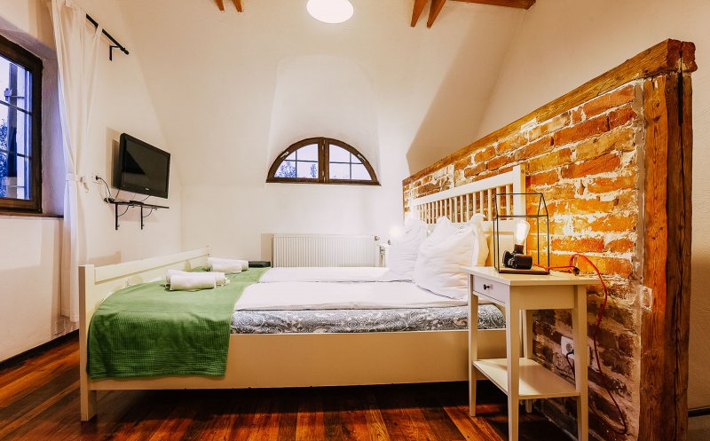 Sunt patru camere cu băi proprii și acces direct în grădina la parter și alte patru camere la etaj. Cele două apartamente cu câte două camere au șemineu, balcon și chicineta. Zona de lucru este situată la etaj - birou și sala conferințe utilată cu smart TV, flipchart, whiteboard și aer condiționat pentru 20 de persoane cu posibilități de extindere.La parter sunt bucătăria și restaurantul cu masă comună lungă. Mesele pot fi însă aranjate și pentru grupuri mici, dacă evenimentul o cere.