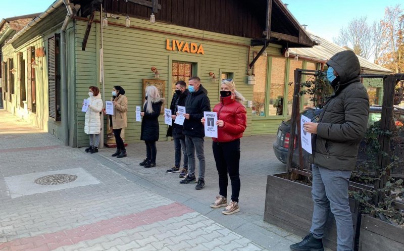 Patronii și angajații din mai multe localuri au întrerupt marți lucrul pentru o jumătate de oră în semn de protest pentru măsurile luate de autorități. Printre cei ieșiți în stradă se numără angajații unor restaurante precum Livada sau Marty.