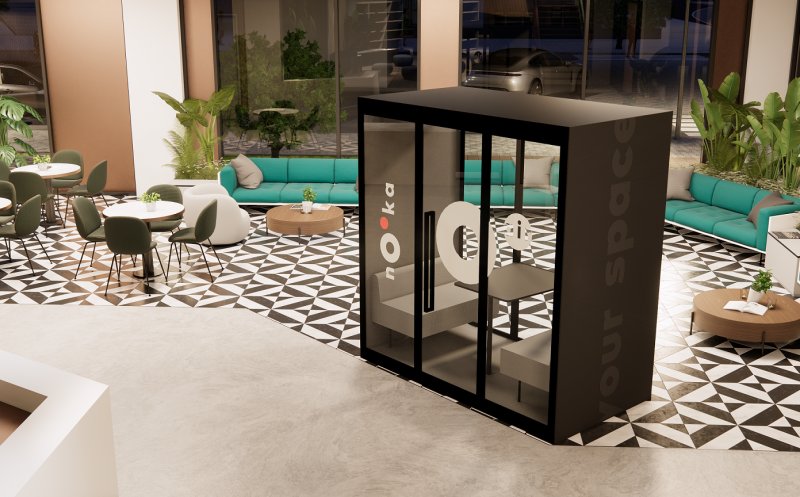 Birourile indoor Nooka Air sunt autonome, izolate fonic, dispun de acces și control inteligent, oferind intimitate, siguranță și o calitate optimă a aerului. Cu o aplicație mobilă personalizată, birourile Nooka Air din cadrul Aeroportului Internațional Avram Iancu Cluj pot fi ușor de gestionat și utilizat de pasagerii care doresc să se concentreze asupra muncii lor sau să se relaxeze în timp ce așteaptă zborul, fără a fi distrași de zgomotul și agitația din aeroport.