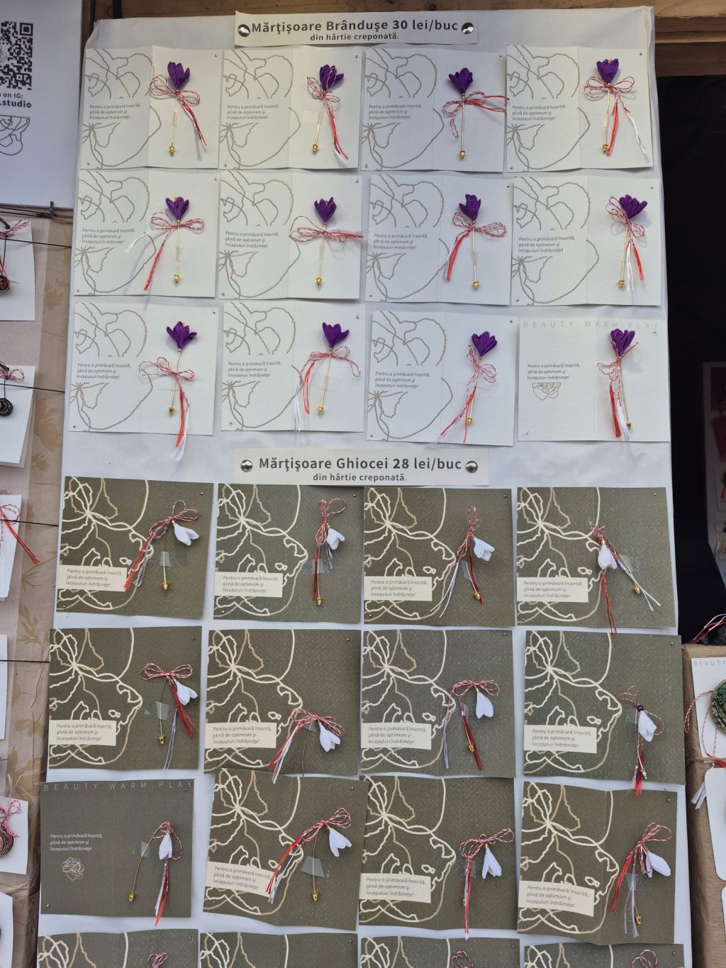 La toate aceste târguri, vizitatorii pot găsi mărțișoare de toate felurile: broșe, creații handmade din rășină, sticlă, lemn, ceramică sau hârtie reciclată, brățări și alte obiecte lucrate manual. Prețurile variază în funcție de material și complexitatea realizării: de la 4 lei pentru mărțișoarele simple până la 350 de lei pentru lămpile din lemn lucrate manual.