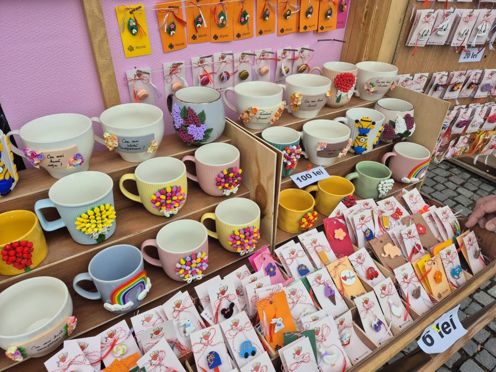 Nu lipsesc nici buchetele de flori uscate sau flori naturale care au diferite prețuri. Buchetul de flori uscate se vinde cu 25 lei, iar ghiveciul cu 40 lei. Un buchet mic de ghiocei se vinde cu 10 lei, un buchet mare cu 30 de lei, iar o zambilă cu 30 de lei. Totodată, se găsesc de cumpărat și căni lucrate manual. Pentru o astfel de cană, clujenii trebuie să scoată din buzunar 100 de lei.