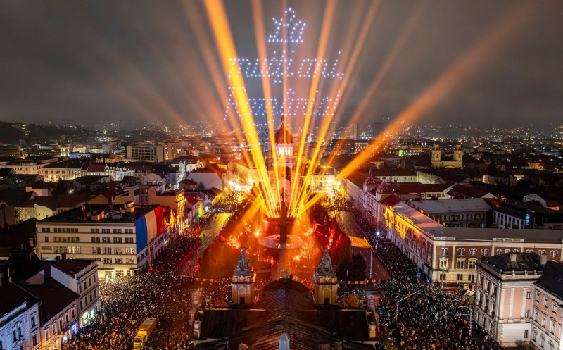 Publicul a asistat la un show spectaculos de drone și lumini, un moment impresionant care a îmbinat tehnologia cu emoția, evocând spiritul istoric și unitatea românilor.