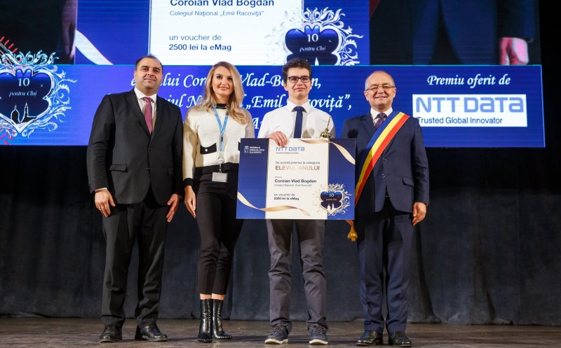 "Susţinem Gala de Excelenţă Zece Pentru Cluj, ajunsă la cea de-a XI-a ediţie, un eveniment de excepţie dedicat preşcolarilor şi elevilor clujeni cu performanţe deosebite obţinute în anul scolar 2018-2019. Avem onoarea să oferim premiul pentru categoria Elevul Anului, acordat lui Coroian Vlad Bogdan, de la Colegiul Naţional Emil Racoviţă", transmit reprezentanţii NTT DATA Romania.