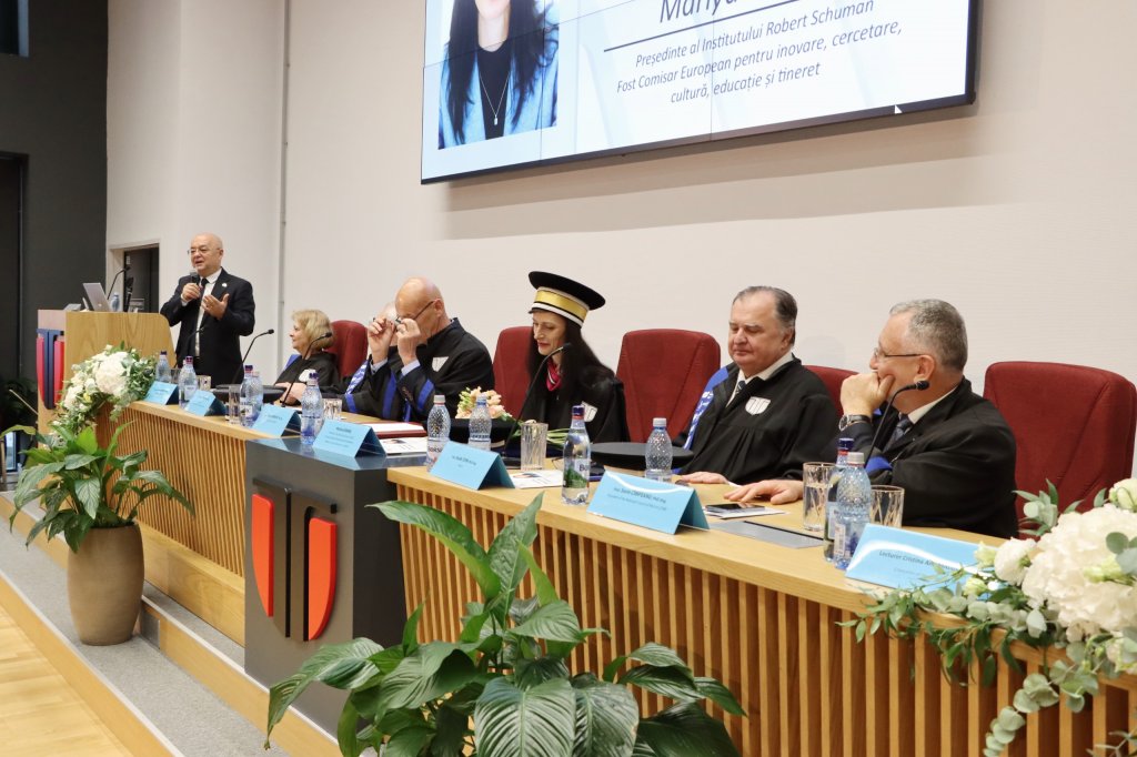 Universitatea Tehnică din Cluj-Napoca a conferit titlul de Doctor Honoris Causa doamnei Mariya Gabriel, Președinte al Institutului Robert Schuman și fost Comisar European pentru Inovare, Cercetare, Cultură, Educație și Tineret, în cadrul unei ceremonii festive, care a avut loc miercuri, 8 octombrie, în Aula HUB UTCN.