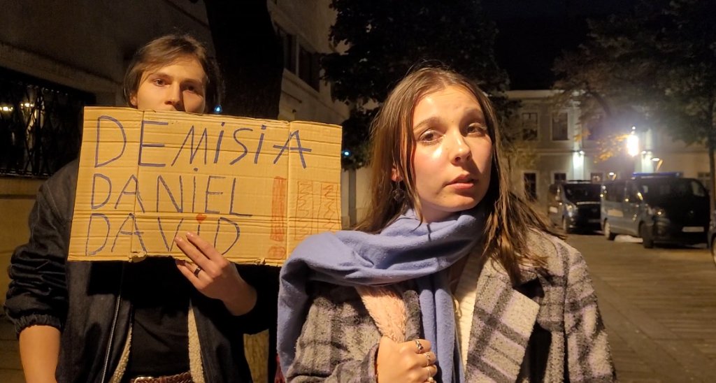 Protestatarii au adus cu ei pancarte și scandează mesaje precum: "David șef la institut, ne trimite la păscut"/ "Nu dorim CREIC și TEAM"/ "Exilați hoția, nu studenția"/ "Mate-Info pe un deal n-are nici măcar semnal" / "Hai afară!"/ "David, vino să ne vezi!".