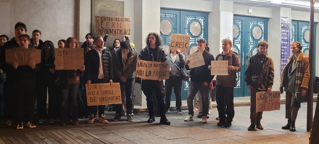 Protestatarii au adus cu ei pancarte și scandează mesaje precum: "David șef la institut, ne trimite la păscut"/ "Nu dorim CREIC șiTEAM"/"Exilați hoția, nu studenția"/ ""Hai afară!"/ "David, vino să ne vezi!".