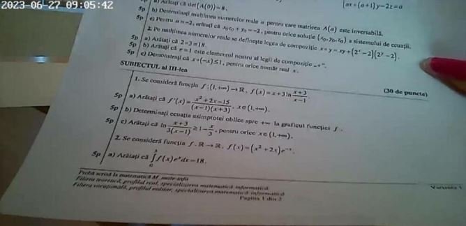 Fotografii a ceea ce par a fi subiectele date, marți, 27 iunie, la proba de Matematică a Bacalaureatului, au ajuns în mediul online, imediat după începerea examenului.