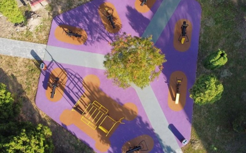 Cu o suprafață de 280 mp, spațiul cuprinde echipamente de fitness reglabile și mobilier urban.