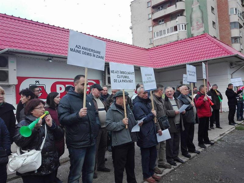 Sindicaliştii de la aeroport au protestat în faţa Consiliului Judeţean FOTO/VIDEO