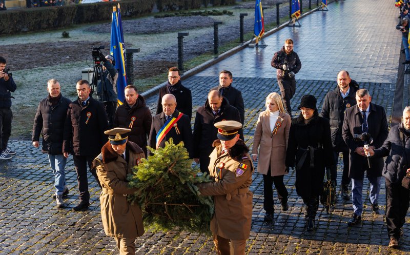 Evenimentele din 1 Decembrie au debutat cu ceremonialul de depunere de jerbe și flori în Piața Mihai Viteazul.
