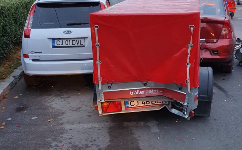 UPDATE: "Un conducător auto în vârstă de 53 de ani din Cluj-Napoca, pe fondul nepăstrării distanței de siguranță în mers a intat în coliziune cu remorca unui auto din față pe care l-a proiectat în alte două autovehicule. Șoferul care nu a păstrat distanța de siguranță în mers a fost rănit", precizează IPJ Cluj.