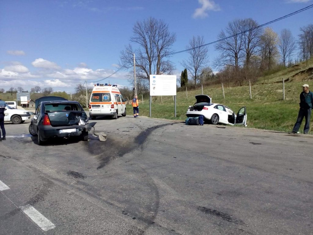 UPDATE: "Un bărbat, de 33 de ani, din Odorheiu Secuiesc, a condus auto dinspre Huedin înspre Cluj-Napoca și, ajuns la intersecția cu DJ103N, pe fondul nerespectării distanței regulamentare faţă de auto oprit pentru a vira la stânga pe Dj103N (autoturism condus de o femeie de 64 de ani din judeţul Sălaj), a intrat în coliziune cu acesta, ulterior fiind proiectat în auto care circula regulamentar din sensul opus. Accidentul rămâne soldat cu pagube materiale, nicio persoană nu a fost transportată la spital", precizează IPJ Cluj.