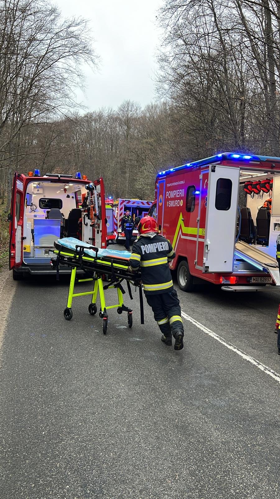 Una dintre victime, o femeie în vârstă de aproximativ 40 de ani, se află în stop cardio-respirator, echipajele medicale aplicând manevre de resuscitare la fața locului. Celelalte două persoane sunt semiconștiente și în stare gravă.