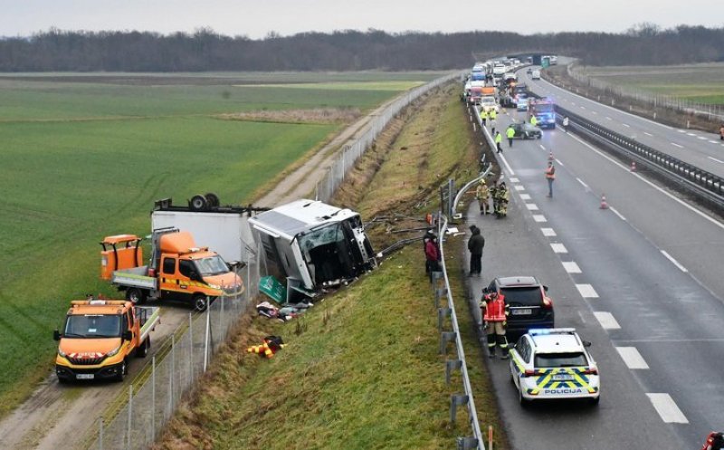 Foto ACCIDENT GRAV! Autocar cu români, răsturnat în Slovenia. Cel puțin trei morți