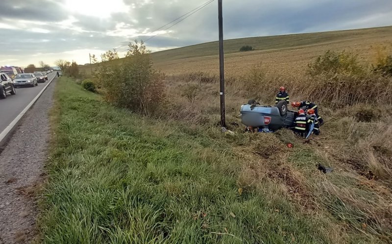 Accident în Cluj. O mașină s-a răsturnat / Două persoane, consultate de un echipaj SMURD