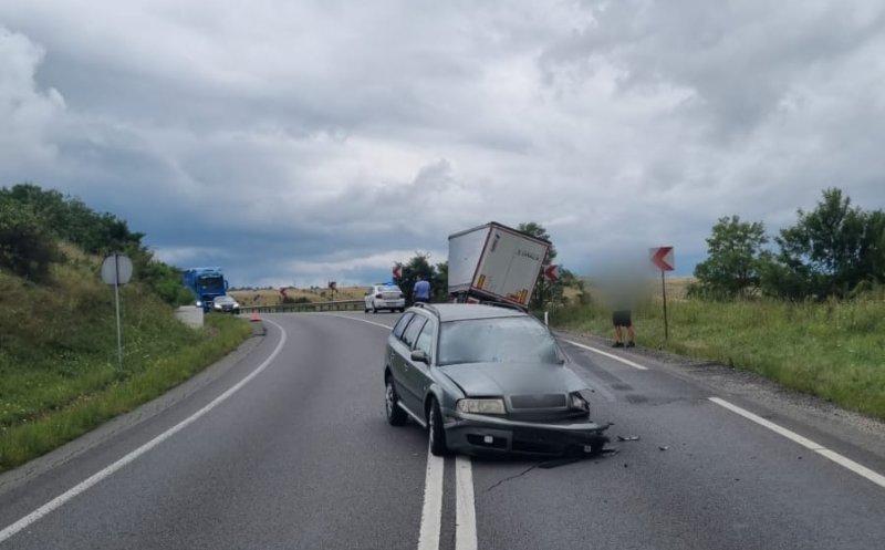 Foto Accident în Cluj! Un camion și o mașină implicate / Două persoane, consultate de medici