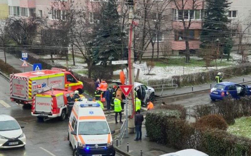 Un accident de circulație a avut loc duminică, 31 ianuarie, într-o intersecție din cartierul Mărăști. Doău mașini au fost avariate grav, una dintre ele ajungând pe trotuar.