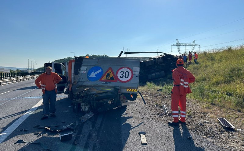 "Conducătorul autocamionului a primit îngrijiri medicale la fața locului. Se circulă dirijat pe banda a doua, cu valori normale. Se estimează reluarea traficului în condiții normale după ora 12.00", a transmis IGPR.