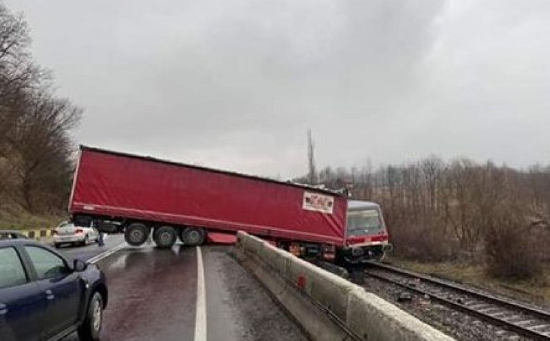 Conducătorul unui tir ce se deplasa spre Oradea a pierdut controlul volanului intr-o curba, a acrosat un autoturism, a rupt parapetul si a intrat pe calea ferată unde a fost lovit de un tren.
