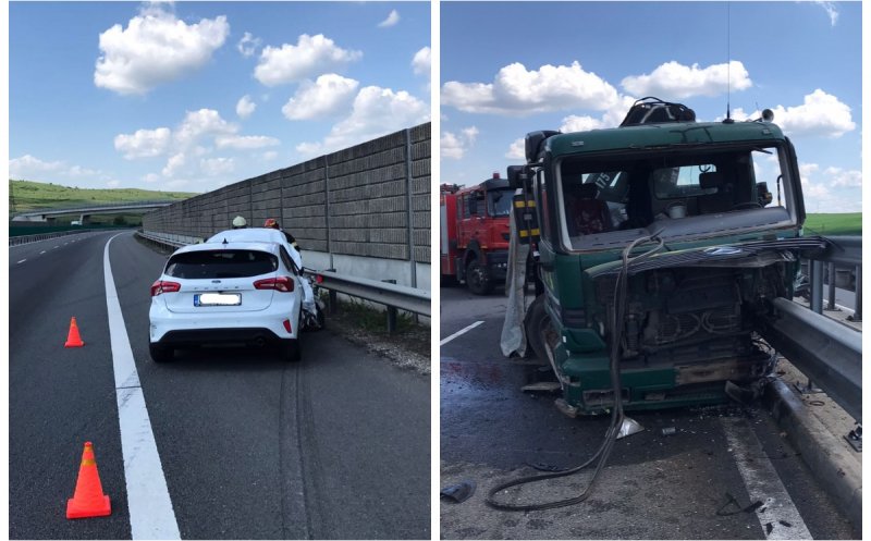 Accident pe autostrada Sebeș – Turda între o mașină și un camion. Există scurgeri de carburant